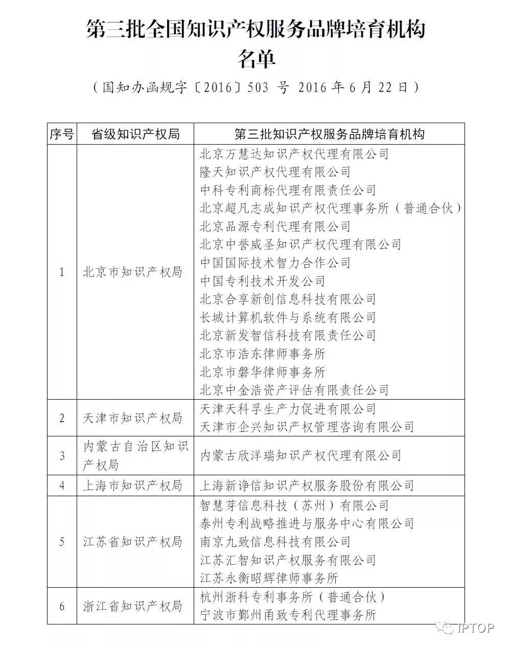 第四批全国知识产权服务品牌培育机构名单