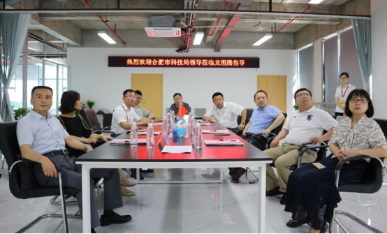 买专利卖专利找龙图腾,真高效! 查专利查商标用IPTOP,全免费!专利年费监控用IP管家,真方便! 为响应国家知识产权政策,龙图腾逐渐与政府对接,继蜀山区科技局、高新区科技局、省知识产权局领导参观视察后,又引起合肥市科技局领导的高度重视。6月14日,合肥市科技局局长程振革、副局长吴海军、副局长袁程、知识产权处处长郭子伦莅临龙图腾指导,高新区科技局局长丁启民、处长杨文娟陪同,董事长兼总经理刘光、副总刘备、副总王宝钢、技术总监张永强、业务总监王慧慧热情接待了来访团,对我司办公环境、企业发展、文化建设等方面进行了全面了解。