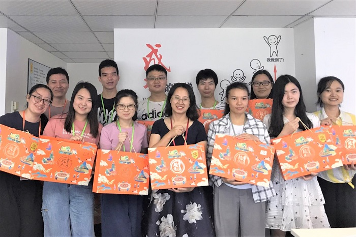 手中的月饼不仅是公司的一份心意, 更包含了龙图腾对每一位“龙精灵”的关爱和祝福。