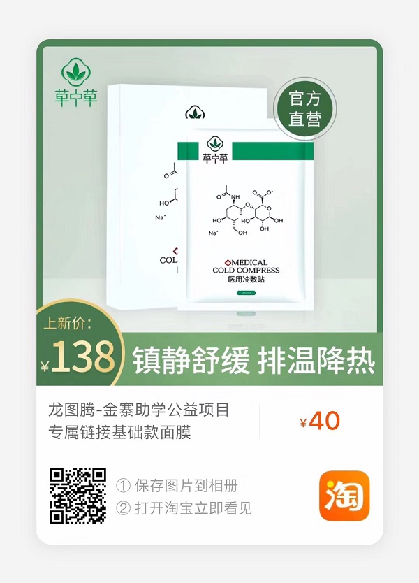 作为一家爱心企业,近期龙图腾公司将举行一场义卖活动,活动期间义卖商品所得收入将作为慈善款,全部捐赠给金寨县的贫困学校,用于贫困孩子们的助学基金。 1、活动时间:2020年3月13日18时—3月15日22时 2、活动商品:草中草医用冷敷贴,原价138元/盒,活动价40元/盒,买五送一 草中草海藻医用冷敷贴,原价178元/盒,活动价50元/盒,买五送一 3、活动方式:在线义卖,支付宝扫码选购,快递包邮