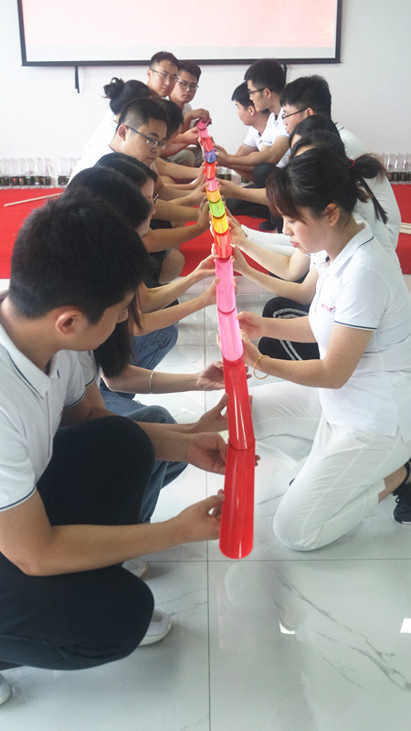 在教练的带领下,我们分别进行了汉诺塔牌挑战、驿站传书、挑战150秒、全员过硫酸河等活动项目。汉诺塔牌挑战要求团队找对方法,全员合作。驿站传书,要求我们在不触犯规则的基础上,勇于创新,跳出传统思维,同时要注意细节。挑战150秒,其中包含了三个项目,密切的团队配合以及在相互信任相互鼓励才能取得好成绩。全员通过硫酸河,更让人体会到,团队合作的力量是无穷大的,一次次失败后大家不抱怨不气馁,终将完成挑战。