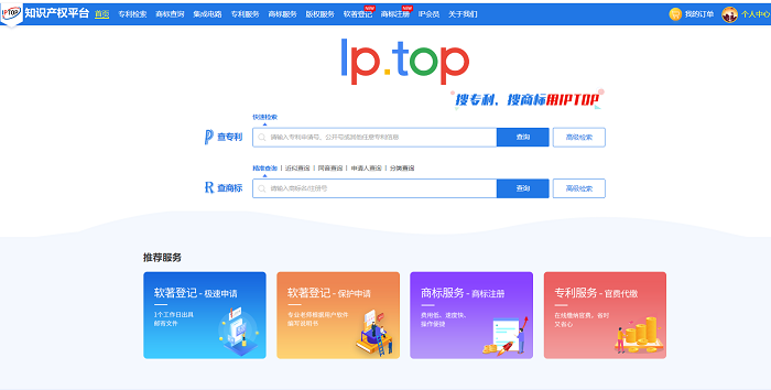 买专利卖专利找龙图腾,真高效! 查专利查商标用IPTOP,全免费!专利年费监控用IP管家,真方便! 现在市面上有很多商标专利检索网站,今天我们带大家来了解一下IPTOP的使用体验:输入网址www.ip.top可以得到如下界面: