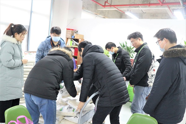 此次扶贫采购的大米顺利运送到龙图腾公司内,并发放给公司员工。无论是为员工发放生活福利,还是眼下为帮助困难群众解决农副产品的营销问题,这无疑是一个双赢的局面。体现的不仅仅是龙图腾对社会的一份责任,更是企业发自内心对员工最真挚的一份关怀。