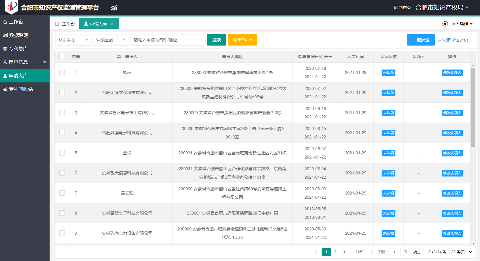 三、申请人库 申请人库可以管理维护本区域内的申请人,具体划分申请人地址等。在列表中,直观显示,方便管理员直接查看。