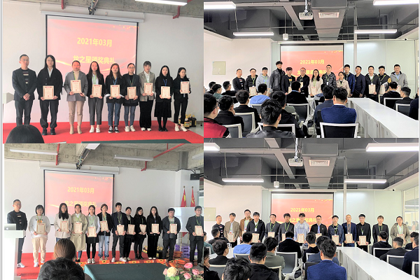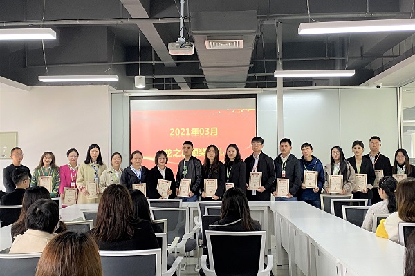 2021年04月13日上午,龙图腾公司2021年03月龙之星颁奖典礼分别在高新区和蜀山区办公室成功举办,公司总经理刘光、副总赵萍及全体员工参与了此次颁奖典礼。
