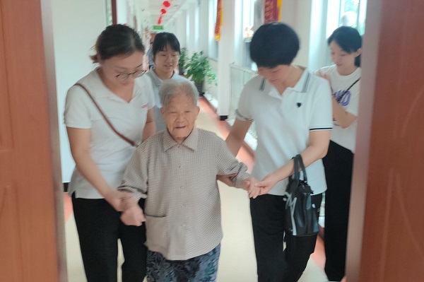 该图为“养亲里”刚过完百岁生日的可爱老人
