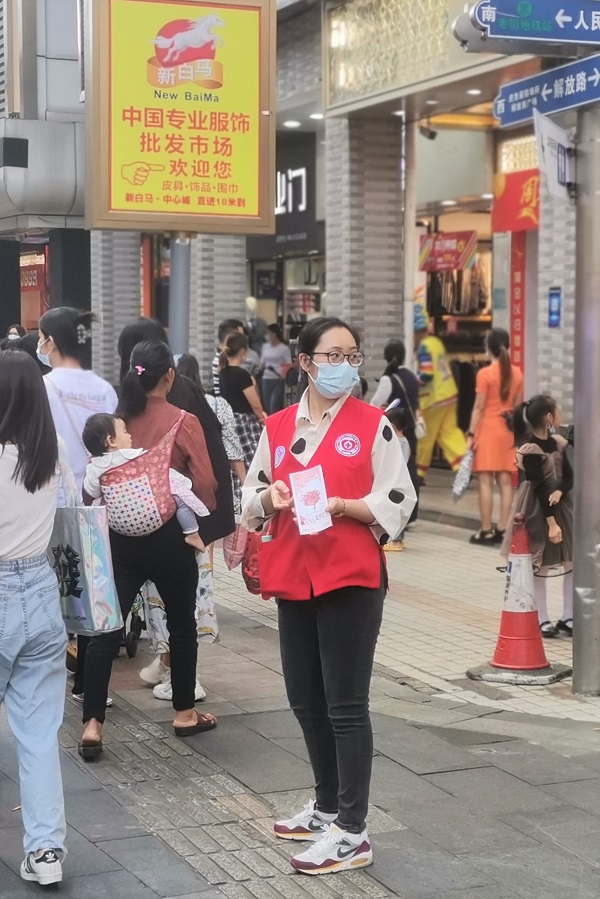 主动宣传、答疑解惑、举牌巡街、引导义士,每一项工作内容大家都尽心竭力去完成。在东门步行街太阳百货周围,各位在闹市中穿梭的同仁们成为了一道靓丽的风景线。