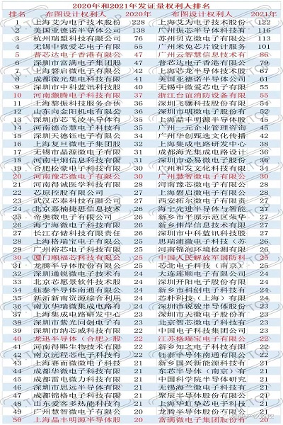 买专利卖专利找龙图腾,真高效! 查专利查商标用IPTOP,全免费!专利年费监控用IP管家,真方便! 一、基本概况 我国《集成电路布图设计保护条例》于2001年10月1日起施行,在实施当天上海复旦微电子股份有限公司提交了名称为:FM1008 8KCPU卡电路的集成电路布图设计,该申请于2001年12月07日公告,登记号为:BS.01500001X,公告号为1;截止至2021年12月31日,我国集成电路布图设计累计发证52259件,从2019年开始出现爆发式增长,近3年的累计发证量占总量的60.7%;累计发证量排名前五的地区依次为:1、广东省12171件,2、江苏省8789件,3、上海市8342件,4、北京市2734件,5、浙江省2685件;累计发证量排名前五的权利人依次为:1、美国亚德诺半导体公司943件,2、上海艾为电子技术股份有限公司445件,3、深圳市明微电子股份有限公司282件、4、上海复旦微电子集团股份有限公司248件,5、上海贝岭股份有限公司246件。以上数据来源龙图腾IPTOP知识产权平台的集成电路栏目。 二、年度统计 截止至2021年12月31日,通过龙图腾IPTOP知识产权平台的集成电路栏目进行数据分析得到:我国集成电路布图设计累计发证52259件,从2019年开始出现爆发式增长,近3年的累计发证量占总量的60.7%;具体年度的申请和发证数据如下图所示。