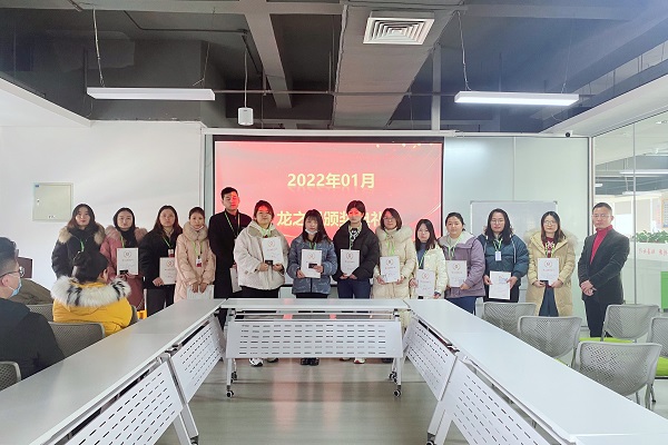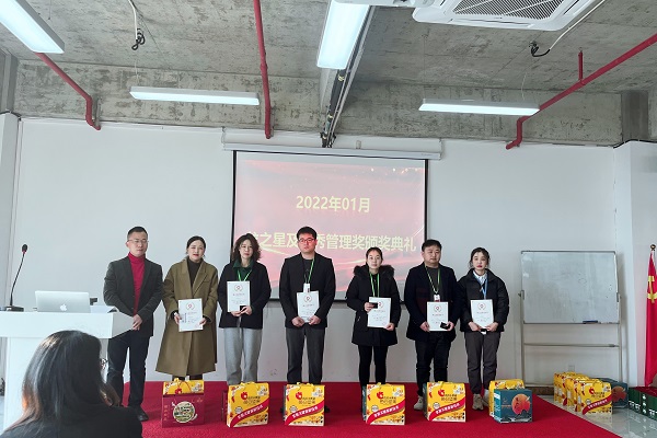 买专利卖专利找龙图腾,真高效! 查专利查商标用IPTOP,全免费!专利年费监控用IP管家,真方便! 为鼓励在工作中成绩优异、工作表现突出、辛勤努力的优秀员工及优秀团队,2月21日上午,龙图腾公司2022年01月份龙之星颁奖典礼分别在高新区和蜀山区办公室举行,公司董事长刘光、各部门负责人及全体员工参加了颁奖典礼。