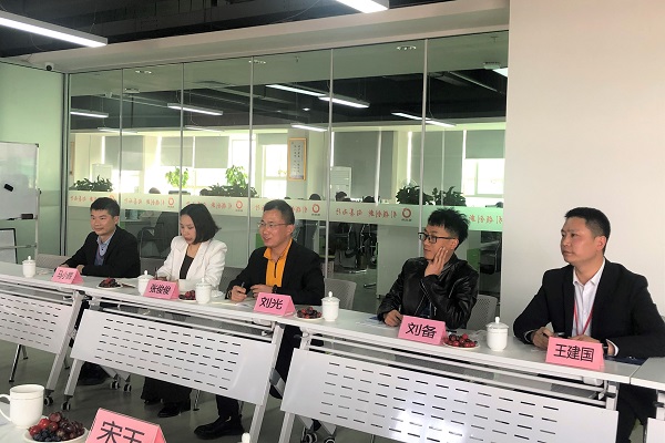 买专利卖专利找龙图腾,真高效! 查专利查商标用IPTOP,全免费!专利年费监控用IP管家,真方便! 3月11日下午,安徽省科技成果转化促进会党委委员、副理事长王新林,副理事长韩东亚,秘书长吴济贫等一行四人到访龙图腾调研指导,龙图腾总经理刘光、副总刘备等人热情接待并陪同参观交流。